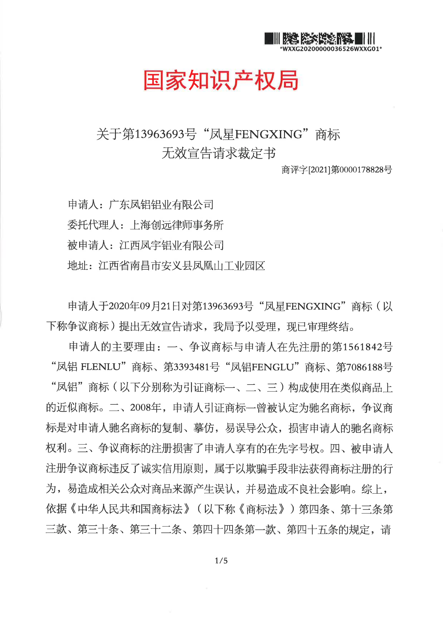 蚌埠辉知队 | 国家知识产权局:“凤星”商标无效